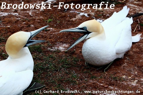 An der Steilküste und auf der Langen Anna (Vogelfelsen) brüten im Frühjahr viele Vögel (Seevögel). Wie z.B. der Basstölpel (ca. 1100), die Trotteolumme (ca. 4000), der Tordalk (ca. 80), der Eissturmvogel (ca. 35) und die Dreizehenmöwe (ca. 3800), Heringsmöwen (ca. 400). Es lohnt sich auch im Frühjahr ein Besuch auf Helgoland, um die Balz von den Basstölpeln und Lummen zu beobachten. Wir werden die Aufzucht der Lummen und Basstölpel auf Helgoland auch noch beobachten. Nun ein paar Bilder vom Brutplatz der Seevögel auf Helgoland.